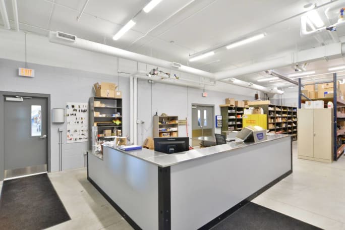 For a parts counter, you need to consider what kind of security you will need when technicians stop by to drop off or retrieve parts. How will you be ordering parts? Will there be distribution centers throughout the garage for consumable items like nuts, bolts, gloves, and safety gear? What about vendor loading? Will you have a loading dock, or will they pull into the shop?