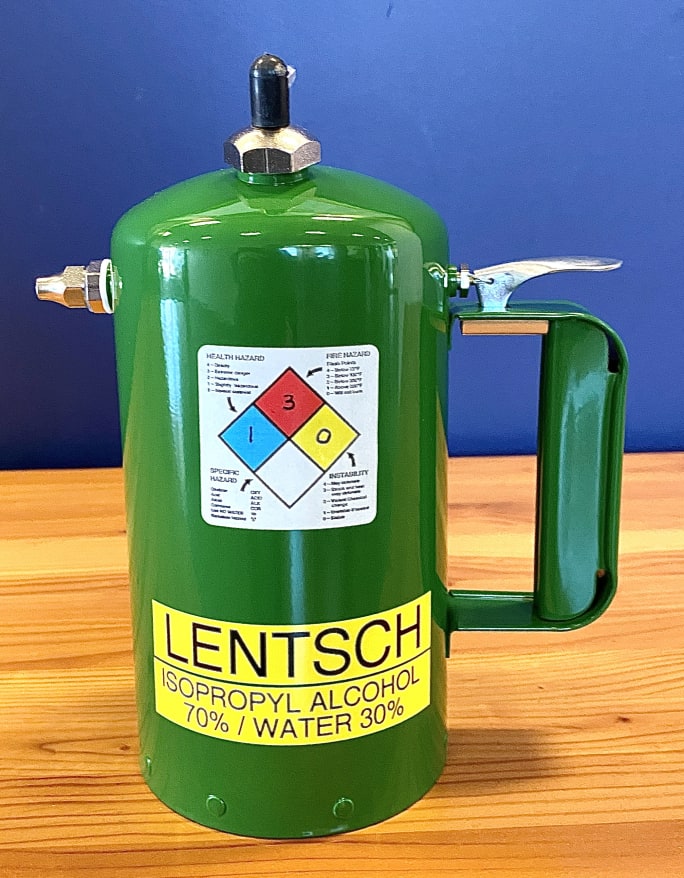 Lentsch purchased sure-shot-type sprayers and assigned them to his technicians. The shop uses 99% isopropyl alcohol and mixes with about 30% water (giving them a 70% solution). They are used to disinfect vehicles before technicians get inside them. His technicians will also spray down towels — used to wipe components down — that can’t be sprayed by the sprayers. The sprayers are also used on vehicles driven by employees who go home sick.