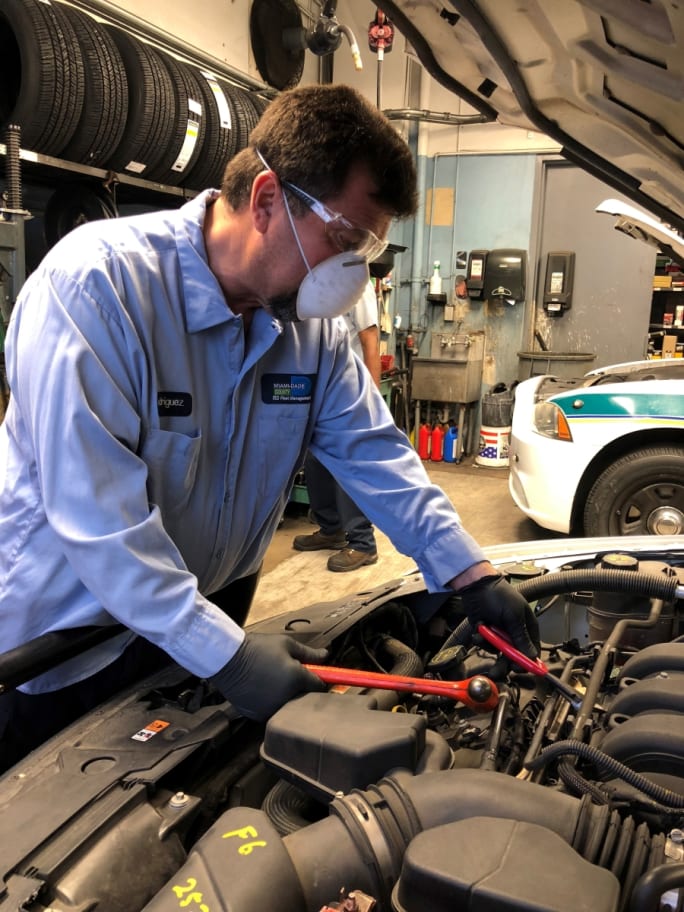 All administrative staff members, including Alex Alfonso, division director for fleet management, and anyone over 65 or has a serious health condition, began working from home or are home on administrative pay. There are social distancing measures in the shops, and employees have gloves, cleaning supplies, and masks. Their temperatures are also checked, and those with a fever and cold symptoms are sent home.