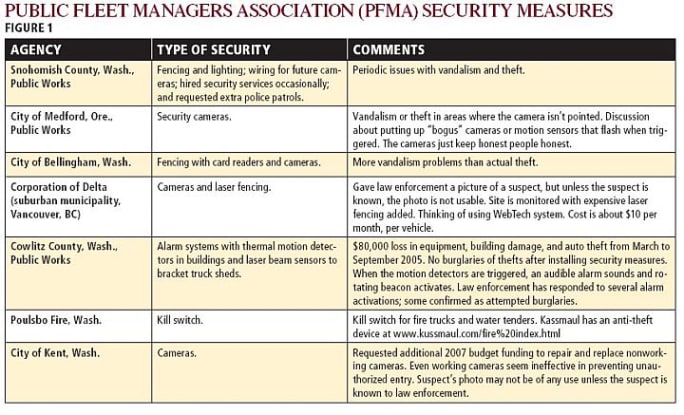 The Public Fleet Managers Association asked members what steps they take to secure parking lots.