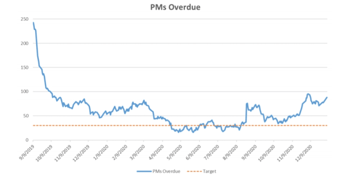 Vehicles overude for preventive maintenance has also decreased.