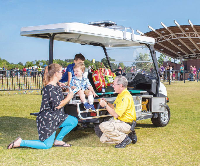 Designed to help government entities meet requirements for emergency medical services (EMS) at municipal-run sites or events such as concerts or other public gatherings, Club Car offers three different ambulance platforms that increase in size: Carryall 300, Transporter, and Carryall 1700 with automatic four-wheel drive.