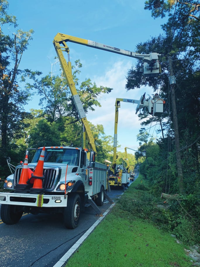 Tallahassee utility crews work to repair power lines after they were damaged in a storm.
