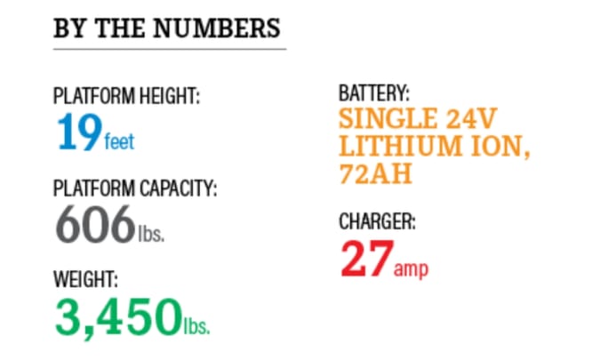 Bhatia said the lithium-ion battery technology would be of most interest to government agencies and said the AE1932 scissor lift’s drive and steer systems consume 70% lower energy than the typical scissor lift. That helped the lithium-ion battery power those systems at a lower price.
