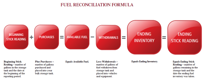 This formula can be used when conducting a bulk fuel reconciliation summary. (View a larger version of this image here.)