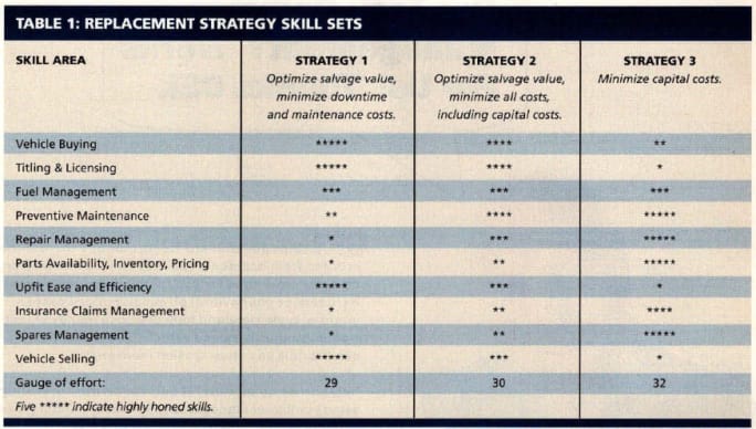 For example, strategy 3, “Minimize Capital Costs” does not require skilled and capable vehicle acquisition specialists because inherent in this strategy is long replacement cycles, with relatively few annual replacements.