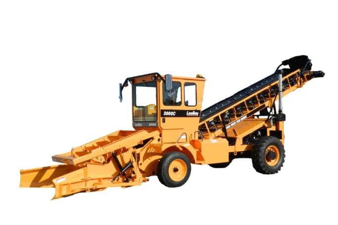 In the past, municipalities would use a front-end loader to dig up that windrowed material and dump it into a dump truck. But using a front-end loader for such a menial task, making that loader unavailable for more important projects, was costly for municipalities.