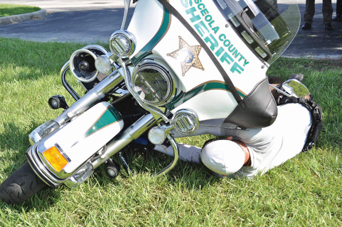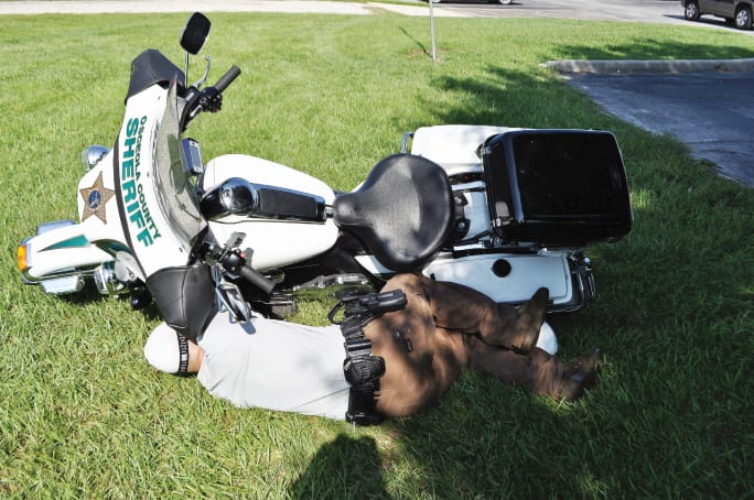 A motorcycle can be used for cover in an emergency as well. Remember, if the bad guy can't see you, it's harder for him to shoot you. You'd be surprised at how much cover a motorcycle can give you when lying on its side and at how many angles you have to shoot from. It's not something I'd do as a primary tactic, but it's good to know it's an option when the need arises. In other words, don't discount motor officers and what they can be trained to do. An agency that uses motorcycles gives them options they never had before.