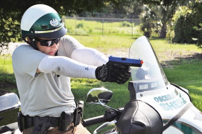 Learn to shoot around your motorcycle's windshield, just as you would learn to shoot through a squad car's windshield. Photo: Amaury Murgado