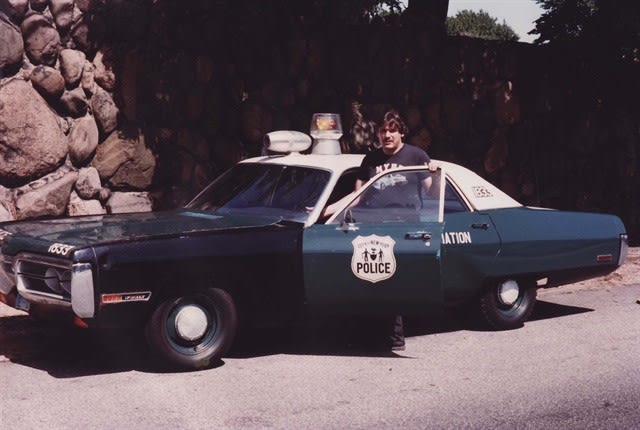 Martinez stands with what was the department’s oldest police car at the time, a 1972 Plymouth Fury, in around 1987.