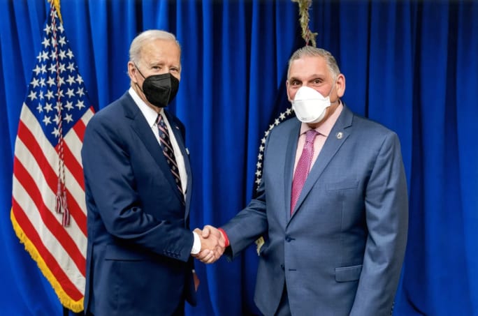 Martinez meets President Joe Biden during his visit to discuss funding for the department in 2021.