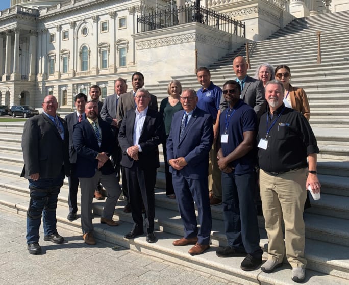 Martinez poses in front of the U.S. Capitol with members of the NAFA Government Affairs Committee after meeting with congressional leaders to discuss electric vehicles and infrastructure.