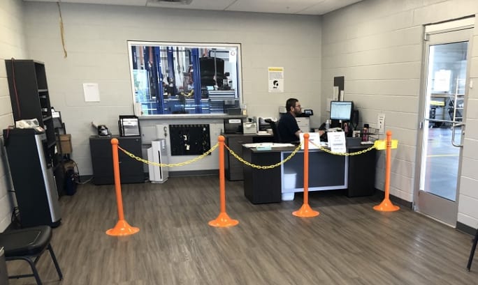 The service writer area, where customers drop off vehicles, has ample room for social distancing.