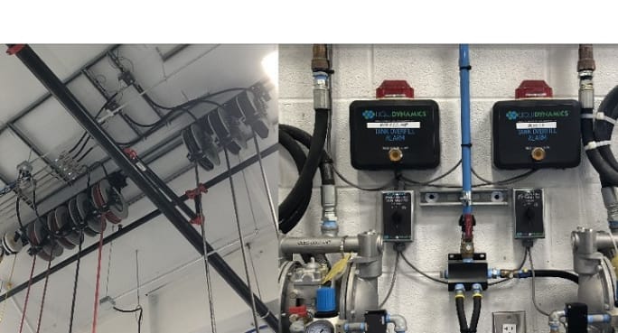 The fluid delivery system allows the parts department to input how much fluid is dispensed into each work order, and technicians can see on their laptops how much oil is dispensed. This system is 100% accurate and allows for accurate billing.