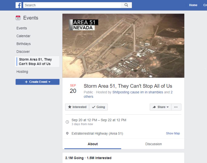 More than 2 million people said they would go to the original Facebook event to storm Area 51.