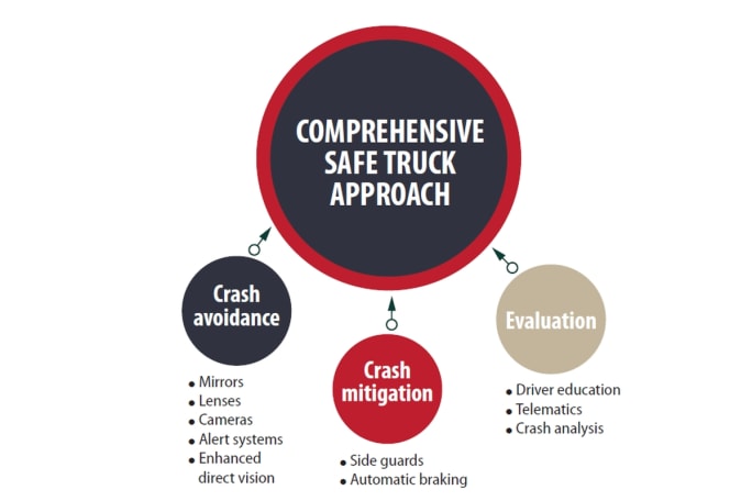 • Side guards. “Side guards should be a no-brainer, common-sense part of the design of every truck. We don’t call air bags or turn signals or seat belts an initiative…side guards should just be standard,” Kerman said.