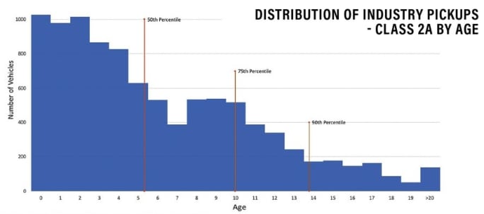 This chart provides more details on the age of Class 2A pickup trucks, showing ages in the 50th, 75th, and 90th percentile.