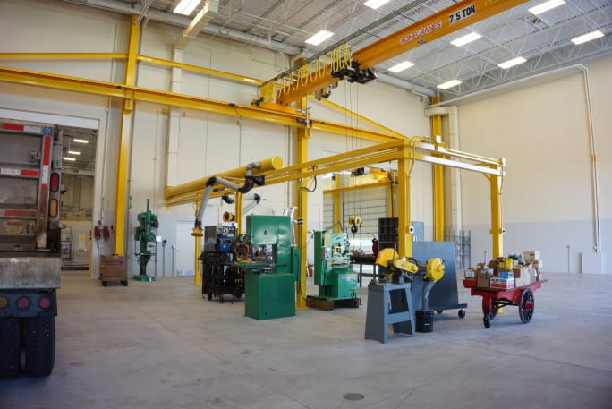 13. Install new fixed jib-cranes at bays lifting items over 100 lbs.