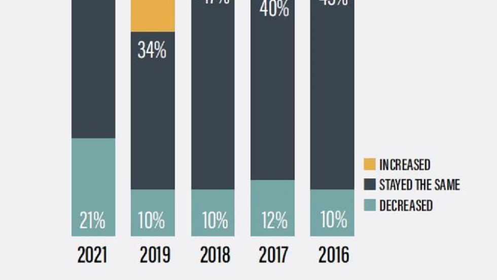 Data from Government Fleet’s biennial industry survey shows more fleets reported size decreases this year than previous years, and the pandemic led to decreased operating and replacement budgets.