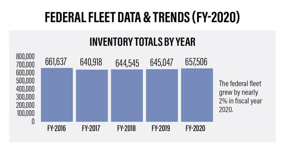 The federal fleet increased by nearly 2% in 2020. Meanwhile, utilization has decreased among passenger vehicles, according to data from the U.S. General Services Administration.