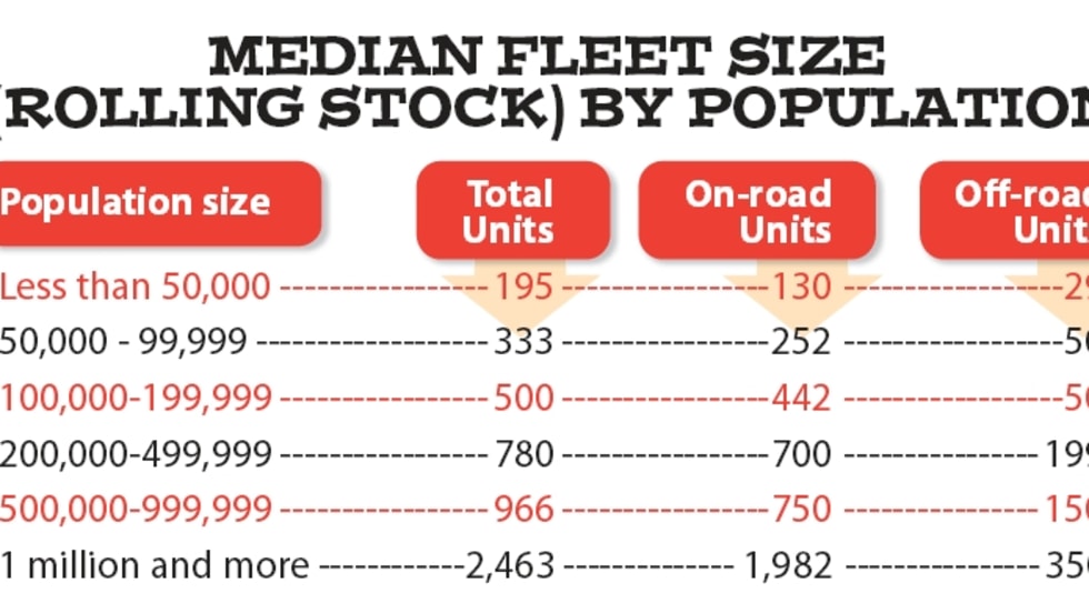 The number of fleet vehicles in an agency directly corresponds with the population size of the area the fleet serves. A significant number of fleets are right-sizing and selling off underutilized vehicles, resulting in fleet reduction. However, increases in service areas or programs have resulted in larger fleets for others.