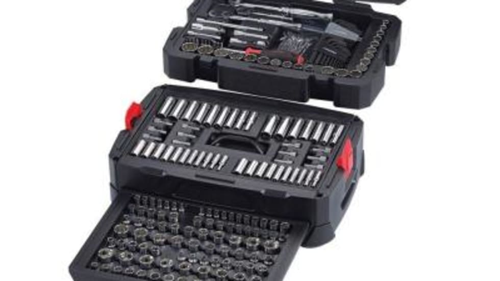 Husky offers its 264-piece socket tool set. The tool chest keeps tools organized with a designated space for every tool. The top compartment may be removed from the chest and carried separately.
