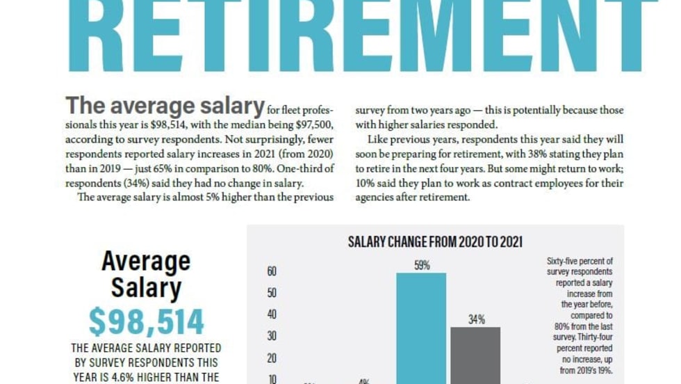 The average salary reported this year is 4.6% higher than the average reported two years ago ($94,173). Meanwhile, 38% of fleet respondents said they plan to retire in the next four years.