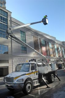 The new Freightliner M2-106 is the first aerial hybrid in New York State and the first production vehicle from the Freightliner Corporation. The hybrid electric bucket truck utilizes Eaton's Hybrid Electric Power System with an electric motor that assists the Cummins Diesel engine with supplemental torque for up to 25 percent fuel economy gains in local haul applications. The system stores energy during stopping, through a process called regenerative braking, and then reuses it for acceleration. Fuel use, emissions and noise are greatly reduced.