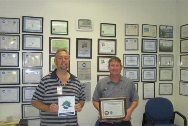 Heavy Equipment Fleet Maintenance Supervisor Jack Church (left) and Light Equipment Fleet Maintenance Supervisor Jeff Cortner (right) were instrumental in achieving the fleet's latest Green Business Certifications. Photo courtesy of Sonoma County