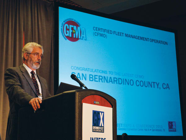 Roger Weaver accepted a crystal trophy for the San Bernardino County, Calif., fleet for attaining Certified Fleet Management Operation certification.