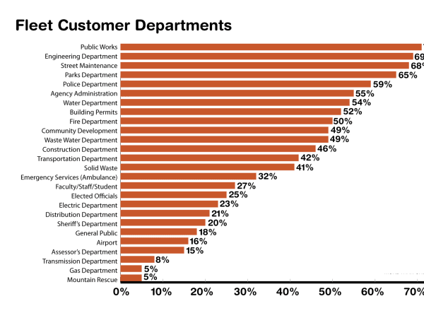 Fleet respondents serve various customer departments, the most common of which is Public Works.