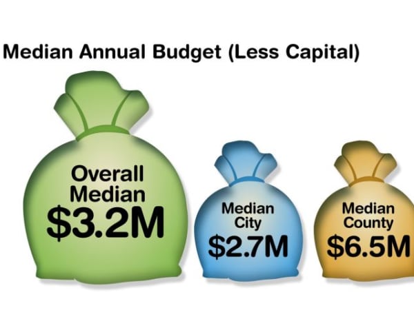 County fleets report having larger budgets than city fleets. Other totals are not calculated due to insufficient funds.