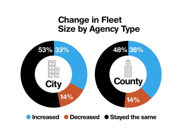 These charts show changes in fleet size based on type of agency. Other totals are not calculated to insufficient responses.