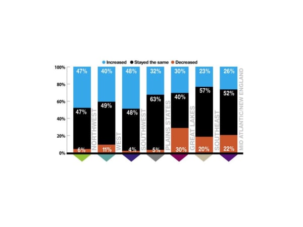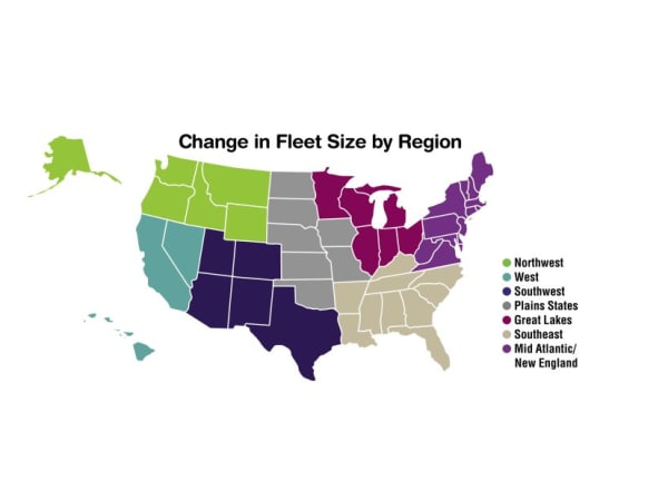 Survey respondents in the western states reported more increases in fleet size than those in other regions.