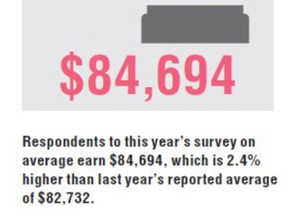 Respondents to this year’s survey on average earn $84,694, which is 2.4% higher than last year’s reported average of $82,732.