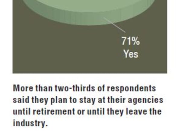 More than two-thirds of respondents said they plan to stay at their agencies until retirement or until they leave the industry.
