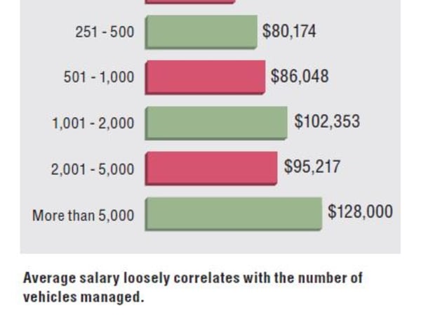 Average salary loosely correlates with the number of vehicles managed.