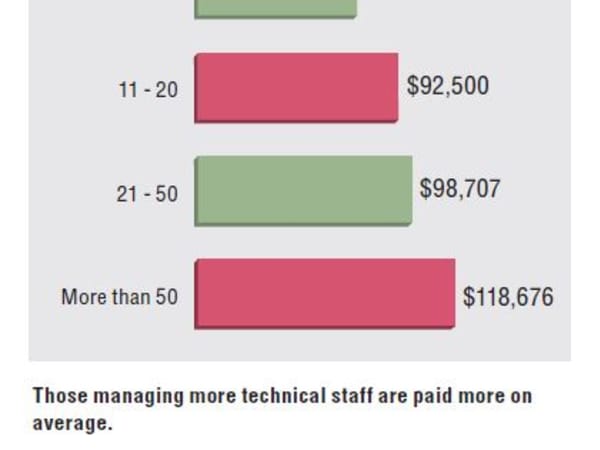 Those managing more technical staff are paid more on average.