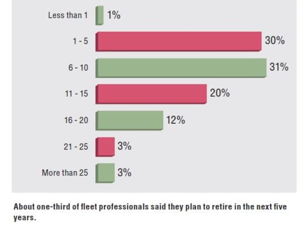 About one-third of fleet professionals said they plan to retire in the next five years.