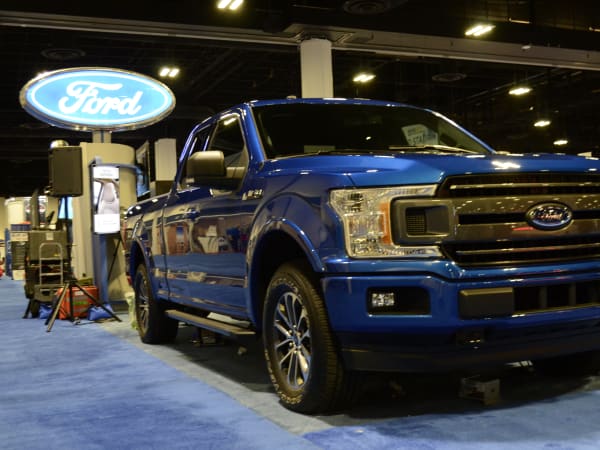 The 2018 F-150 (prototype shown) includes fleet-exclusive features such as a backup alarm system, black step bars on the XLT, engine block heater, and LED warning strobes.