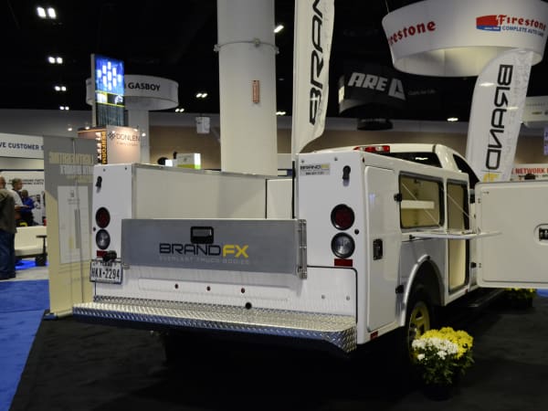 A.R.E. featured a new heavy-duty aluminum commercial cab DCU, pictured here on the Ford F-150.