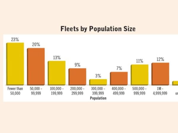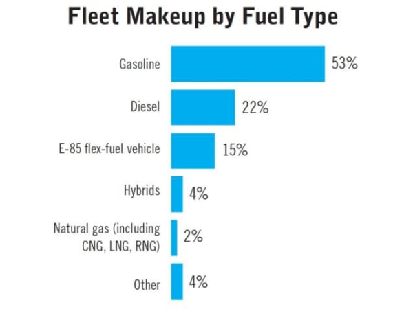 Respondents were asked to provide their fleet breakdown by fuel type used by vehicles. This chart shows the average vehicle makeup by fuel used. “Other” includes plug-in electric vehicles and propane autogas vehicles.