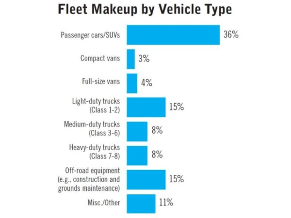 Respondents were asked to provide their fleet breakdown by vehicle type. This chart shows the average vehicle makeup of respondents.