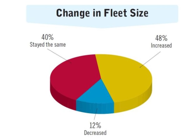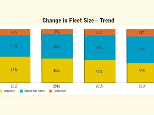 This graph tracks respondents’ reports of fleet size fluctuations since this question has been asked in GF’s annual survey, which began in 2014. Respondents report a steady increase in fleet growth.