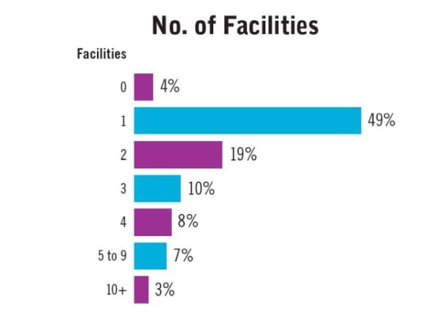 About half of fleet respondents reported having one maintenance facility.
