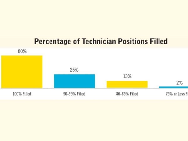 Respondents were asked how many of their allocated technician positions were currently filled, and 60% said they were fully staffed.