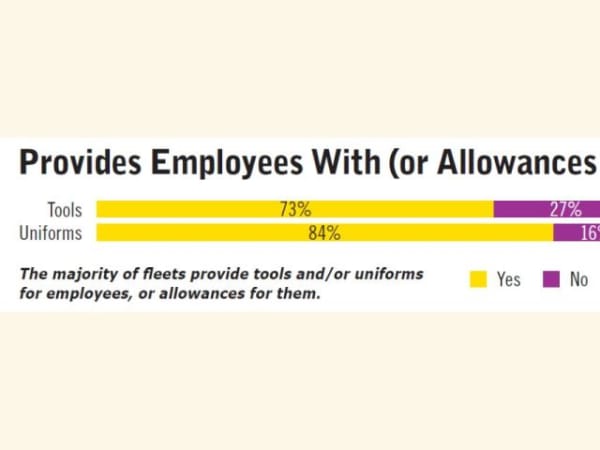 The majority of fleets provide tools and/or uniforms for employees, or allowances for them.