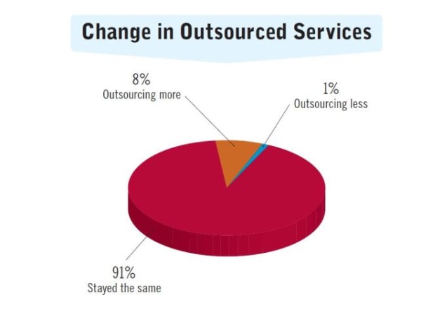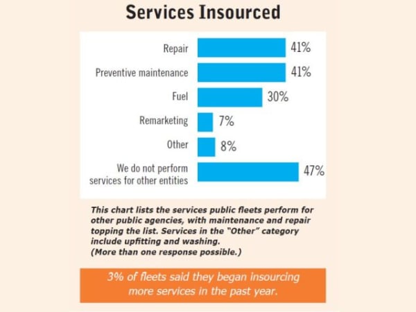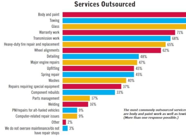 Those who are outsourcing more services said they did it due to the increasing age of the fleet, increasing diversification of the fleet, and being short on technicians. Some agencies began outsourcing upfitting while one fleet began doing it in-house.