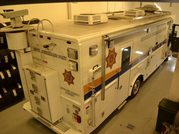 The Sheriff's Office purchased this mobile command post in 2008. It is built on a Freightliner chassis.