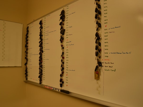 This vehicle key and status board allows staff to keep track of its vehicles.